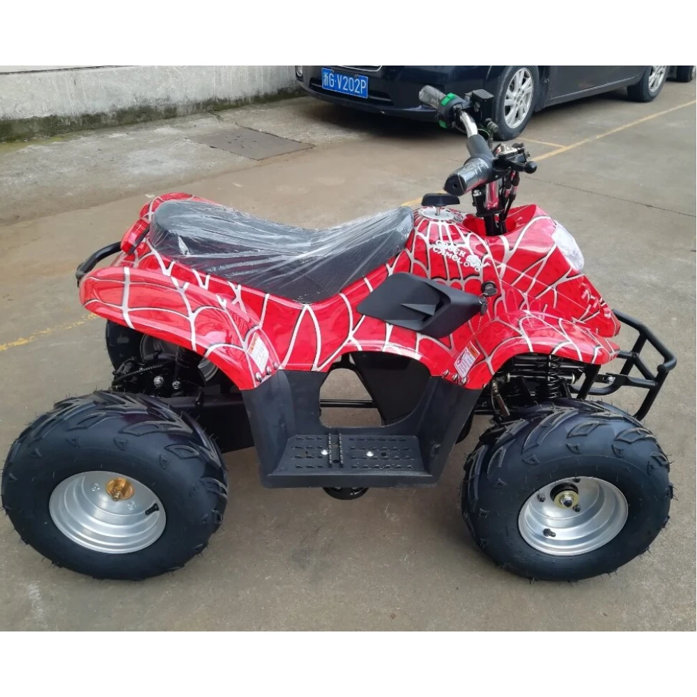 Дизайн квадроцикла таков, что сразу привлекает к себе внимание. Обтекаемые формы и яркая покраска делают своё дело. А узор стилизованный под паутину, напоминает о костюме Человека-паука – это не оставит равнодушным вашего ребёнка.