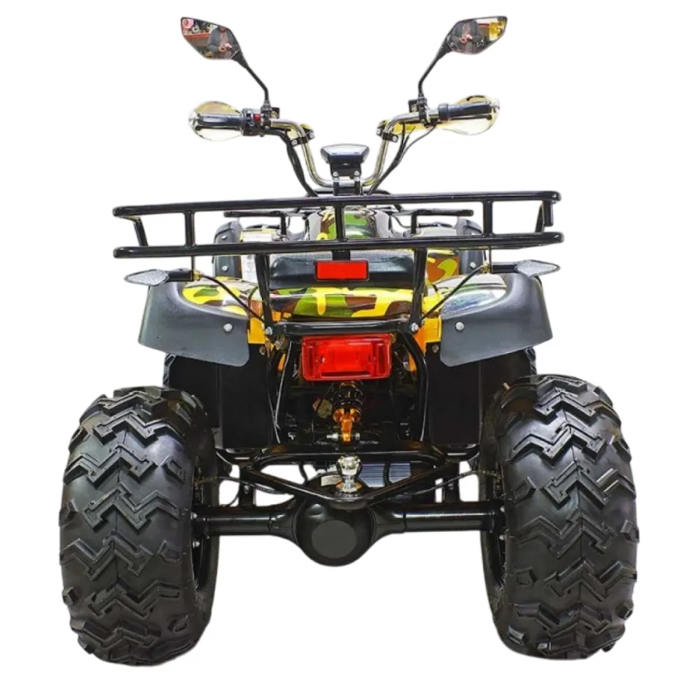 GreenCamel Sahara AWD 4x4 – отличный квадроцикл производимый в России. Он прекрасно подойдёт как подросткам возрастом от четырнадцати лет, так и взрослым. Его максимальная нагрузка: двести килограмм. GreenCamel Sahara AWD 4x4 можно разогнать до скорости 40 км/ч. На все колёса установлены дисковые гидравлические тормоза. Есть трехскоростной переключатель с ключом. Также имеется: фаркоп, зеркала, поворотники, сигнал, LCD дисплей. Имеется возможность отключать передний привод. Установленную штатную батарею 52Ah SLA GEL можно заменить на более ёмкую. Штатная, заряжается полностью за восемь часов и позволяет проехать 35 километров (при использовании обоих приводов) или 75 километров (при использовании одного привода).