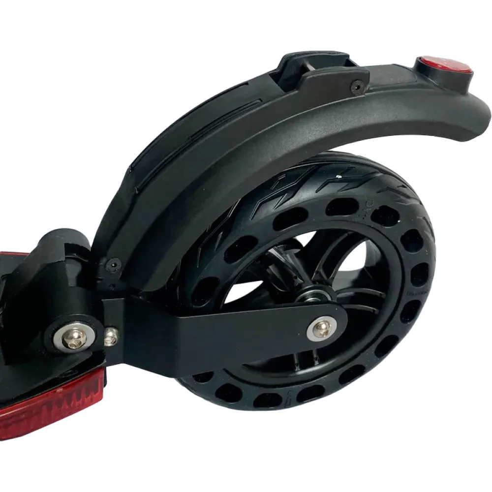 Техника выполнена в классическом дизайне, заметная на фоне аналогичных тс. Надежность, прочность и долговечность материала изготовления позволили пользоваться электросамокатом в жестких условиях эксплуатации. Техника послушна и проста в управлении. Оснащена двигателем 350 Вт, который вместе с емкой батареей обеспечивает запас хода до 25 км и максимальную скорость до 30 км/час.