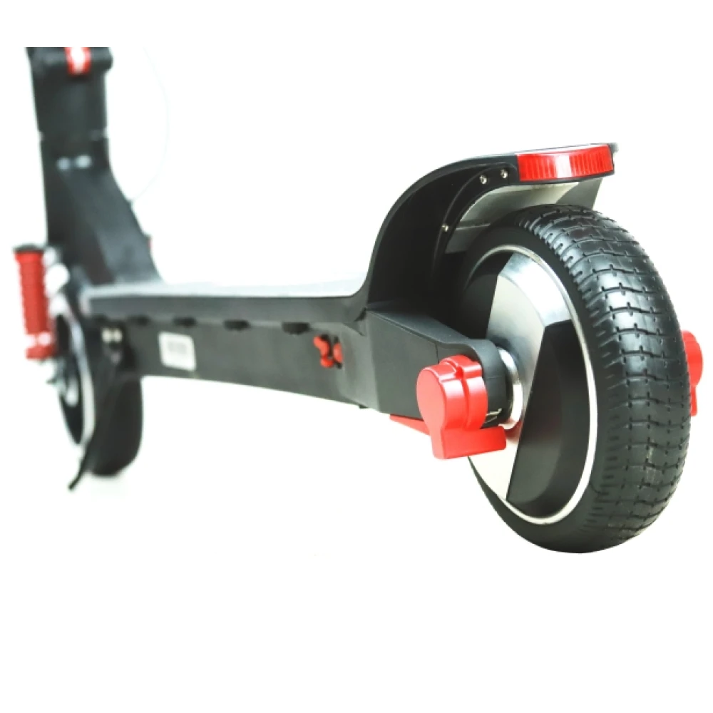 Не дорогой и качественный городской электрический самокат со скоростью 25 км / ч, мощностью мотора 250 Вт, а тормоза на передних и задних колесах позволяют регулировать движение. В комплект входит литий-полимерный аккумулятор, который можно зарядить за 4 часа, а емкости в 5 А / час достаточно для автономной работы 17 километров. Колеса диаметром 8 дюймов.
