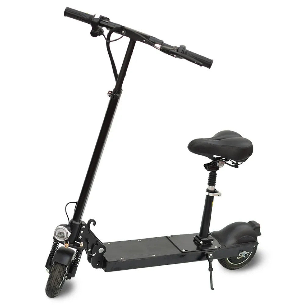 Электросамокат Kugoo light предназначен для передвижения в черте города и за его приделами. Он достаточно подъемистый, быстро разгоняется с места. Грунтовые и гравийные дороги преодолевает относительно легко, пружинная амортизация переднего колеса сглаживает неприятные ощущения и тряску. На нем удобно ездить, установив сидение, оно мягкое, оснащено амортизатором. В данной модели переднее колесо имеет камерную, накачиваемую шину, заднее колесо бескамерное, каучуковое. Диаметр колес 8 дюймов. Конструкция рамы очень прочная, все соединения оснавательные, максимальная нагрузка на агрегат 130 кг.