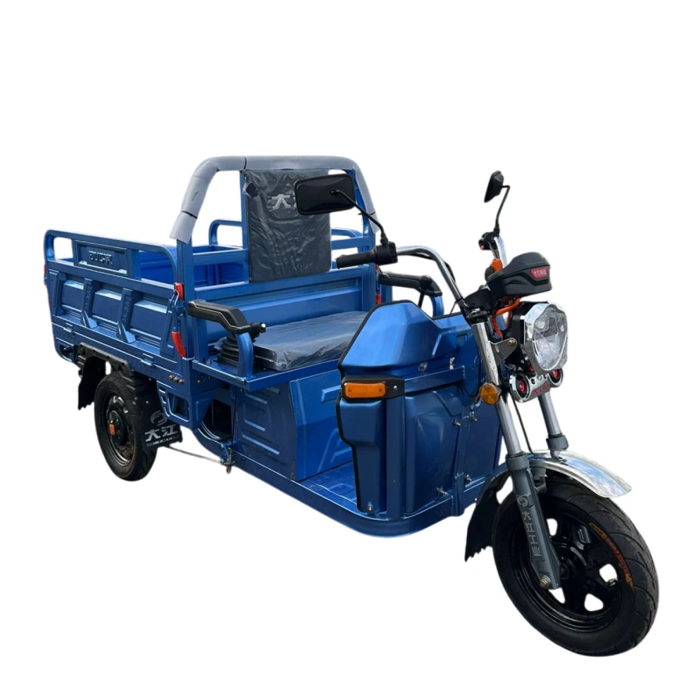 Время зарядки всего 4 часа — самое быстрое в линейке, позволяющее быстро вернуть трицикл в строй. Компактные габариты (2770×980×1370 мм) обеспечивают удобство парковки и хранения. Экономичный вариант для лёгких и средних грузоперевозок.
