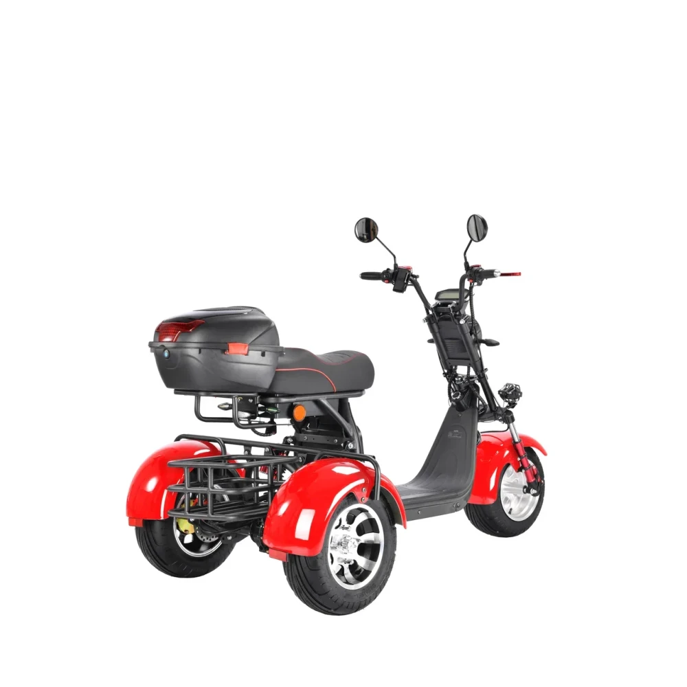 Трехколесный скутер CityCoco WS-Pro 3000W Trike+ красный - быстрый городской транспорт с литыми дисками и широкими колесами.
