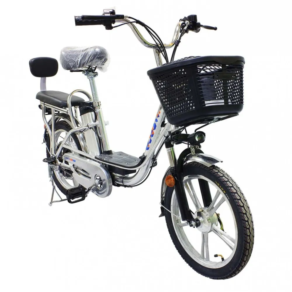 Техника имеет мощность – 350 Вт, надежную тормозную систему, не требующую применения силы. Качественный АКБ позволяет разгоняться до 35км/час и ехать на одной подзарядке до 40км. На этапе производства электровелосипеда производители позаботился об удобном мягком сидение, снижающим нагрузку на позвоночник, снимающим усталость со спины.