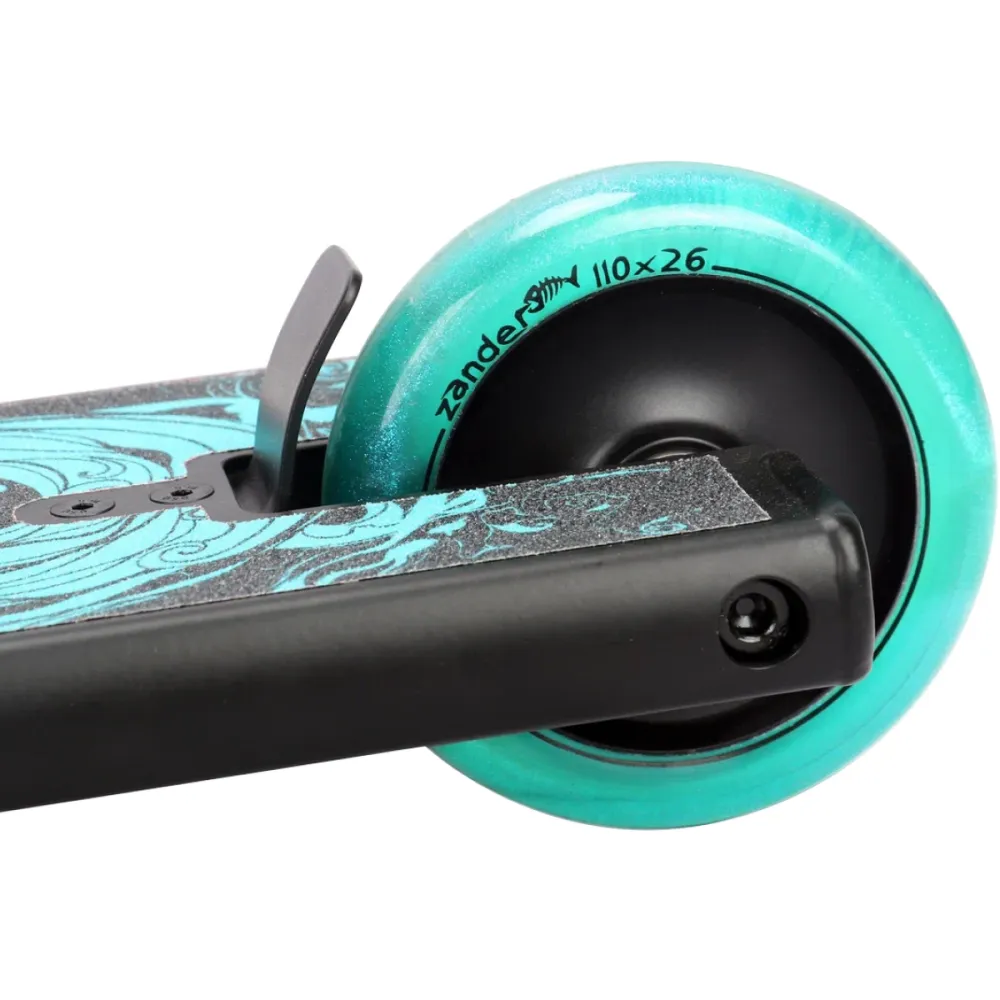 Трюковой самокат Tech Team Zander 2022 в черном цвете предназначен для экстремального катания в парках, специальных спортивных площадках. Подойдёт для роста спортсмена до 190 см и веса 100 кг.